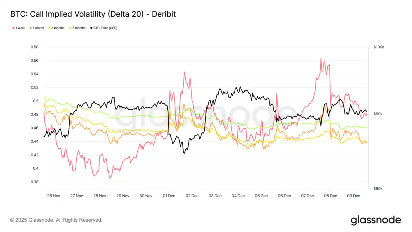 隨著FOMC 會議作為本年最後一個主要催化劑,隱含波動率預計將在12 月下旬逐步衰減。市場方向取決於流動性是否改善以及賣家是否會收手,或者當前這種時間驅動的看跌壓力是否會持續。