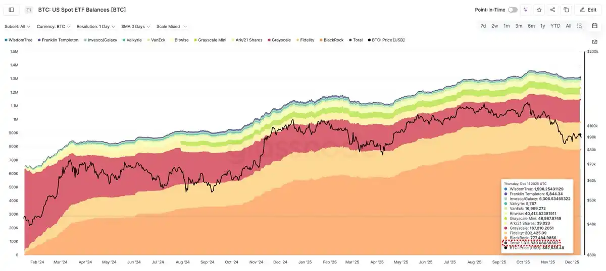 除了實體企業儲備的BTC 之外,截至目前,現貨比特幣ETF 共持有約131.1 萬枚BTC。其中,位居前三的分別是:貝萊德約77.7 萬枚,富達約20.2 萬枚,灰階約16.7 萬枚。