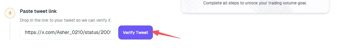 步骤 5:填写已发邀请推文的链接,并点击「验证推文」完成验证。