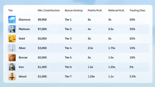 每 24 小時更新一次參與等級;越早參與,等級越高,獲得配額的機率越大;更高等級將解鎖更高比例的額外空投、終身權益與平台福利
