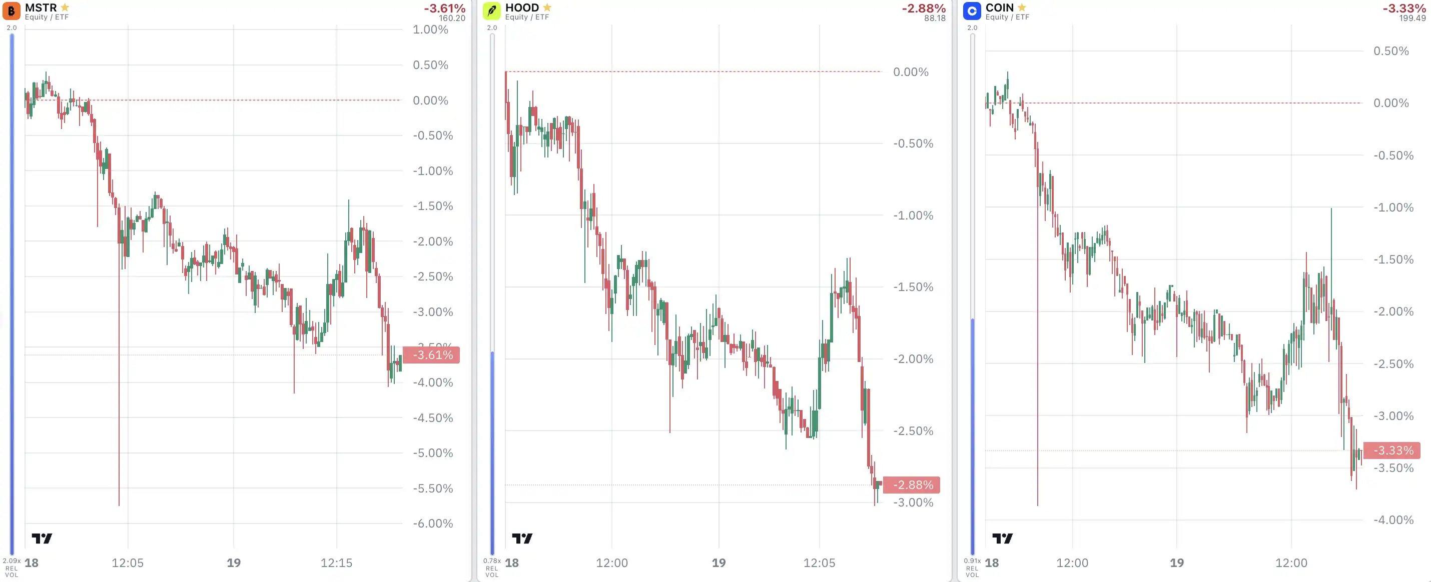 個股方面,三隻加密股表現顯著落後於其他個股。
