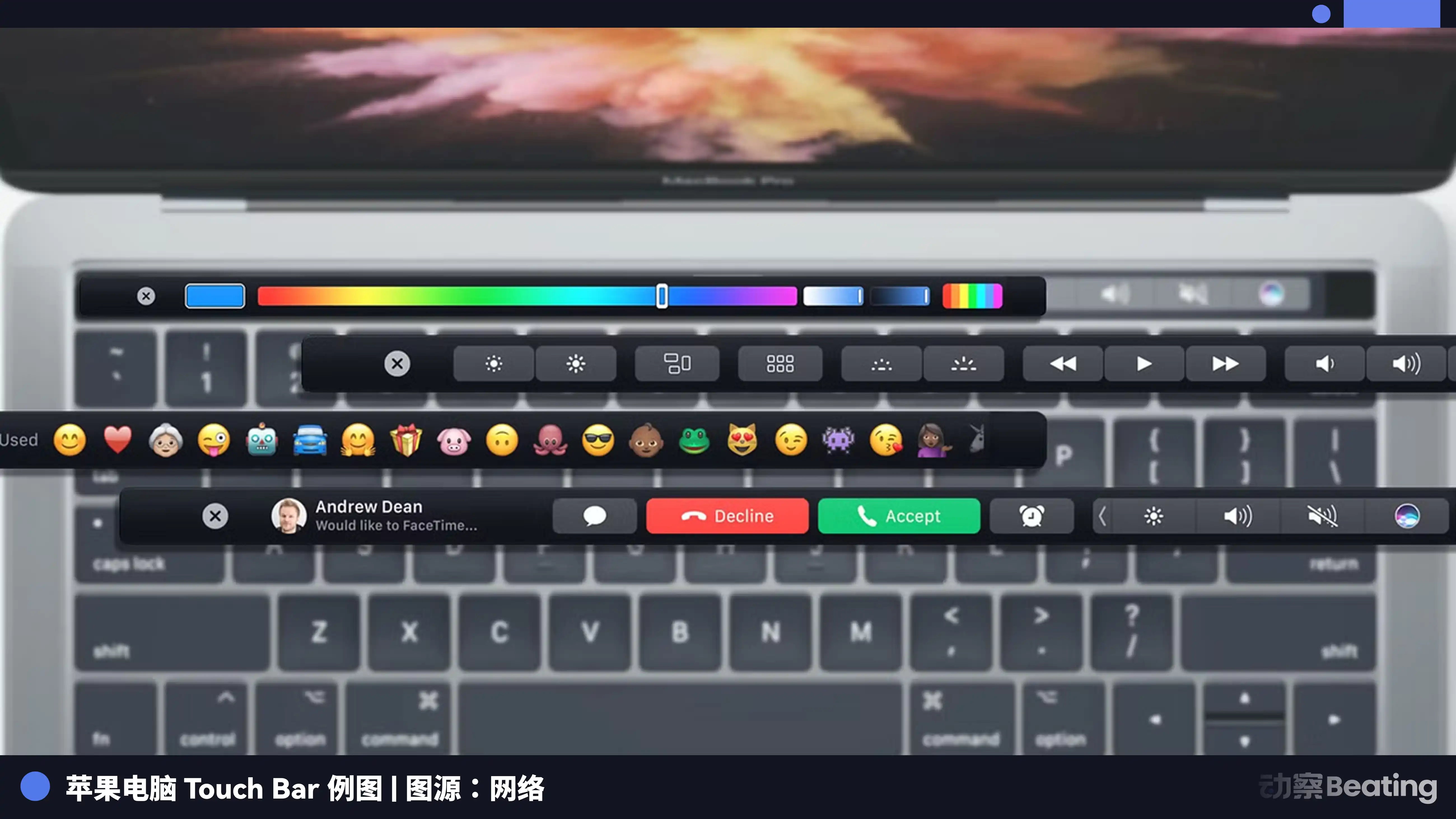 為了讓 MacBook Pro 看起來更具未來感,設計團隊決定用一條 OLED 觸控螢幕替代傳統的物理功能鍵。為了把機身厚度再削減幾毫米,他們發明了鍵程極短的「蝴蝶鍵盤」,可縮短的鍵程讓使用體驗像在敲一塊木板,並且一粒灰塵就能讓整個鍵盤罷工。