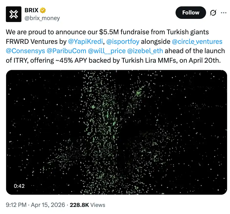 Brix 做的事情,就是把這條利差交易的收益路徑封裝成一個鏈上可觸達的產品。
