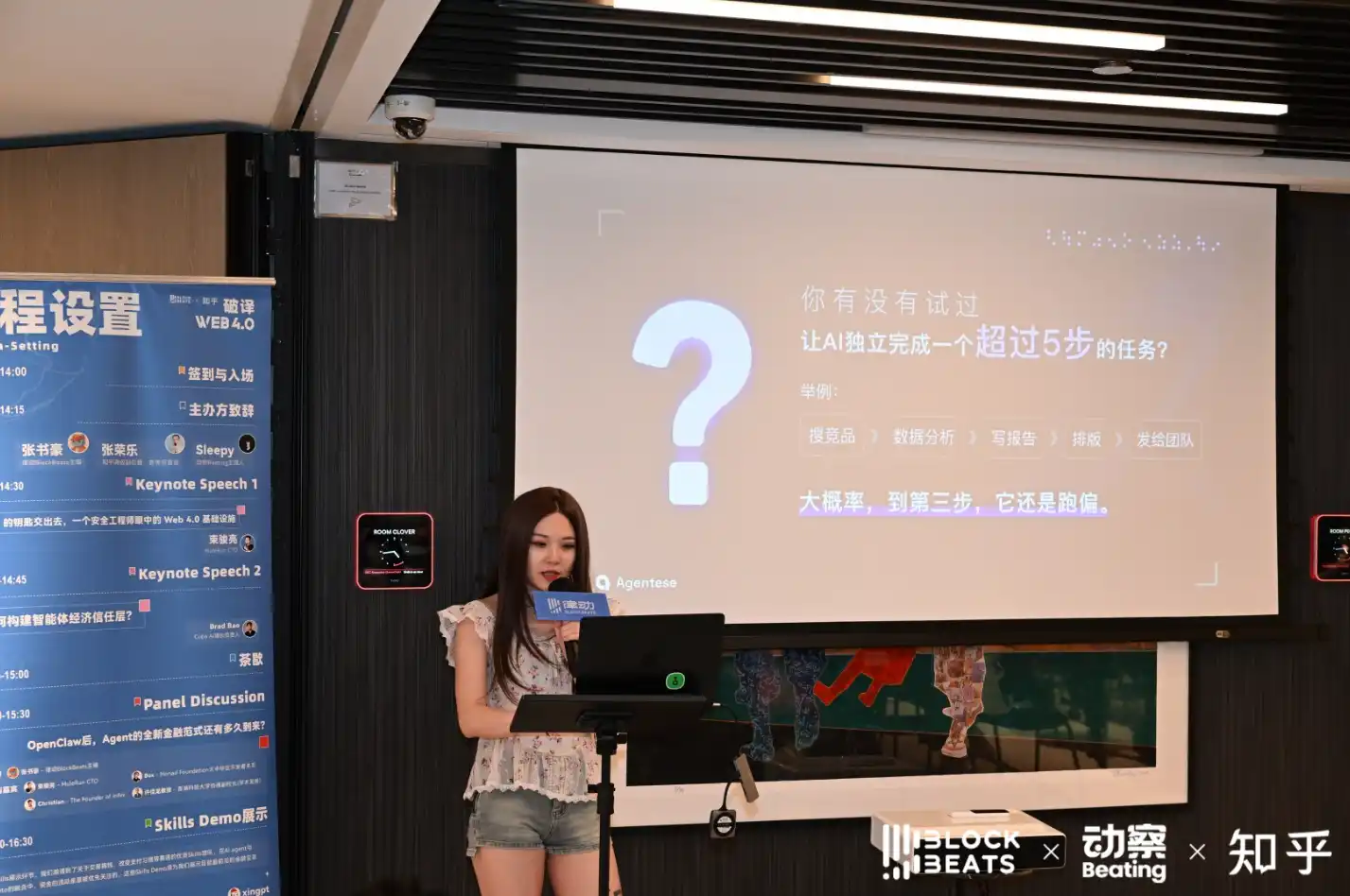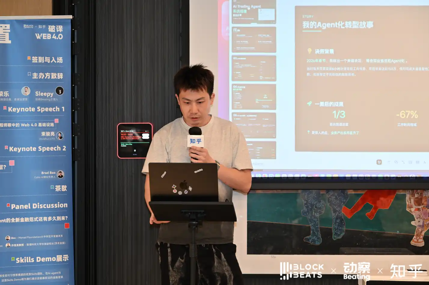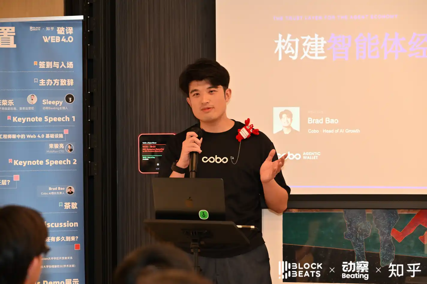 來自 MuleRun 的 CTO 束駿亮和 Cobo 的 AI 增長負責人 Brad Bao 分別進行了演講,談論他們各自對於 AI Agent 能力與信任關係的看法。